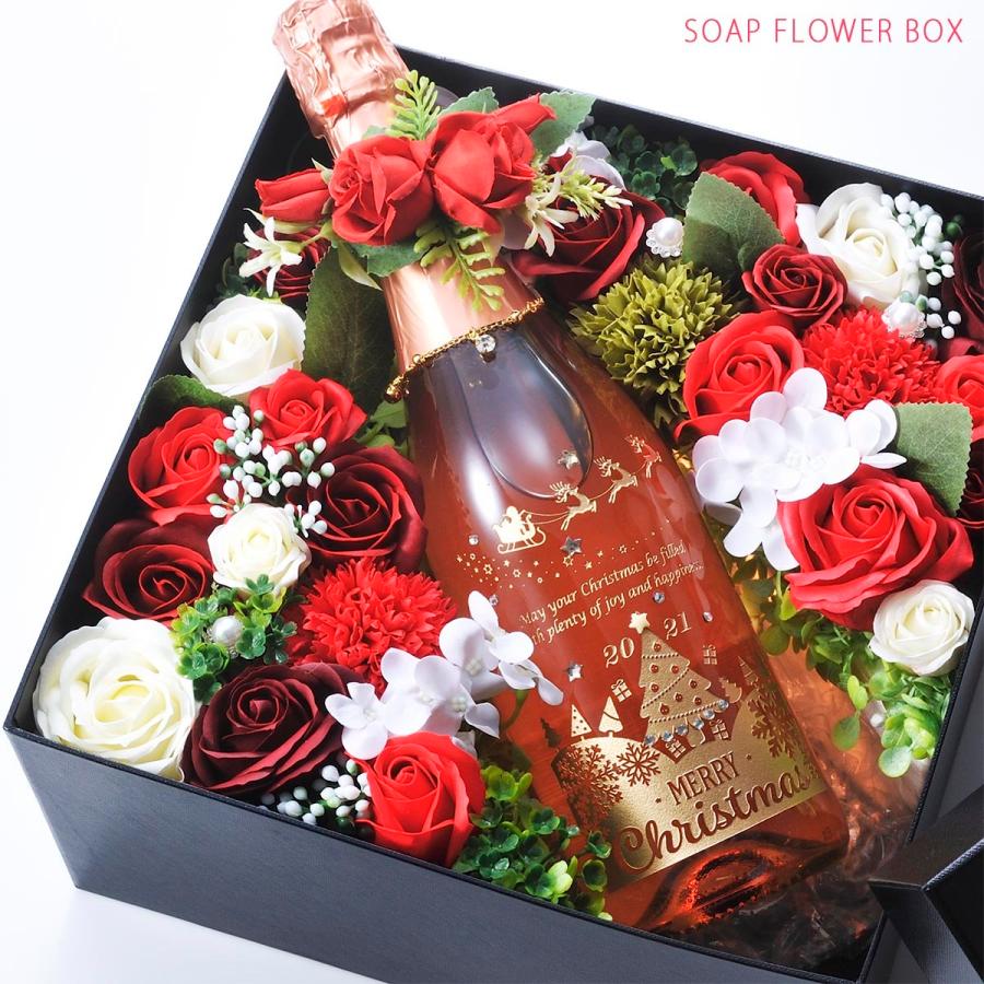 訳ありセール 格安 ロゼ スパークリング シャンパン クリスマスデザイン クリスマス プレゼント 名入れ シャンパン クリスマス ギフト プレゼント 名入れ Wish ソープフラワーboxセット ラインストーン Rose ワイン